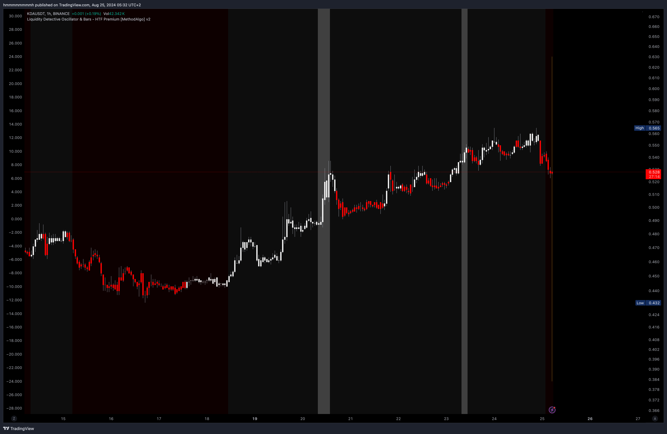 - Since the Liquidity Detective uses higher timeframe data, traders should observe the "Yellow Line of HTF Candle Close" to confirm signals. When BG Colors change, wait until the current chart's real-time candle closes before considering the signal to avoid changes in real-time signals. See Realtime vs Confirmed Signals for more details.