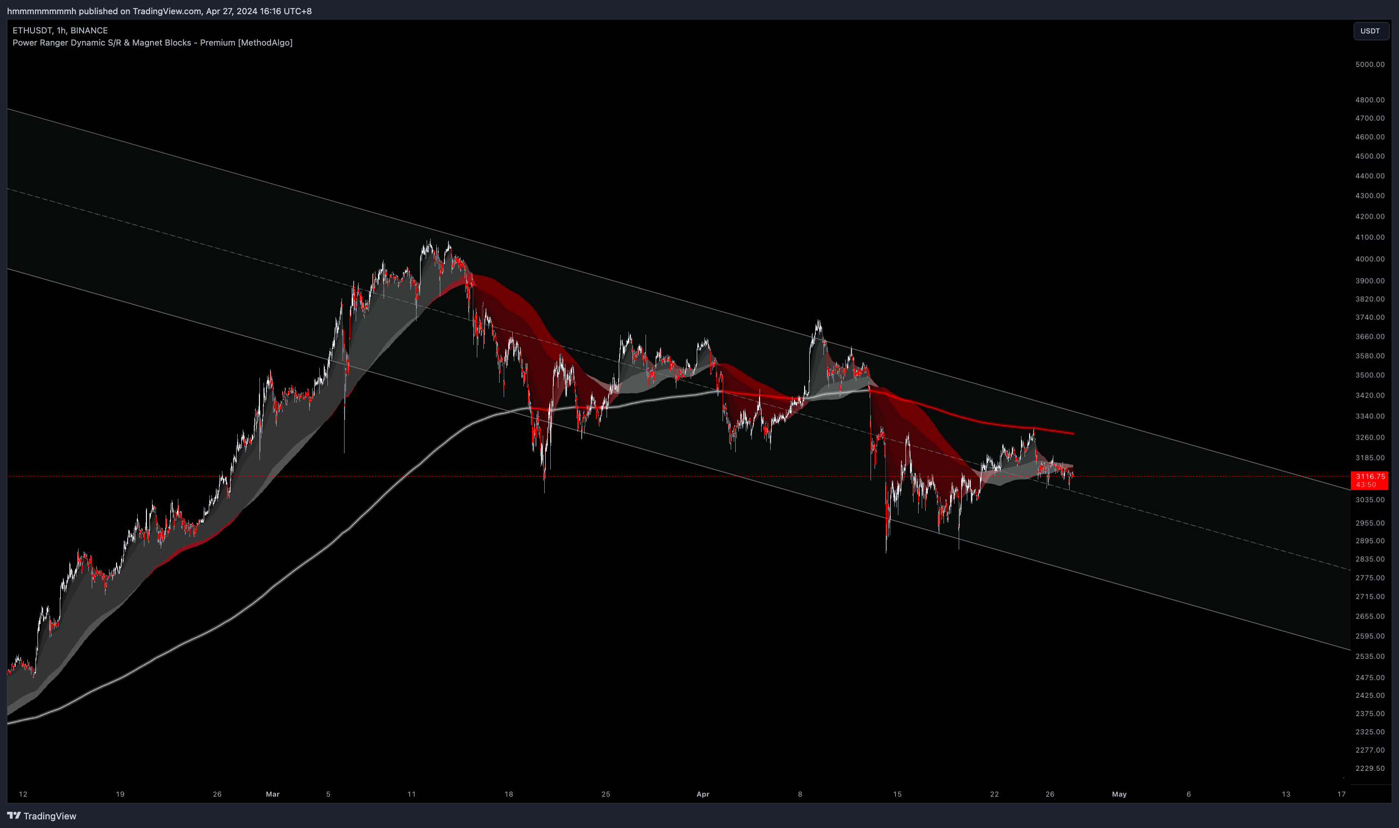 Here is a chart of BNBUSDT 4H, where we can verify the effectiveness of this channel by checking if the midline of the Pangolin channel has been accurately respected in the trend history. While checking, it's also an opportunity to verify the support and resistance price levels displayed by other support/resistance tools provided by PowerRanger.