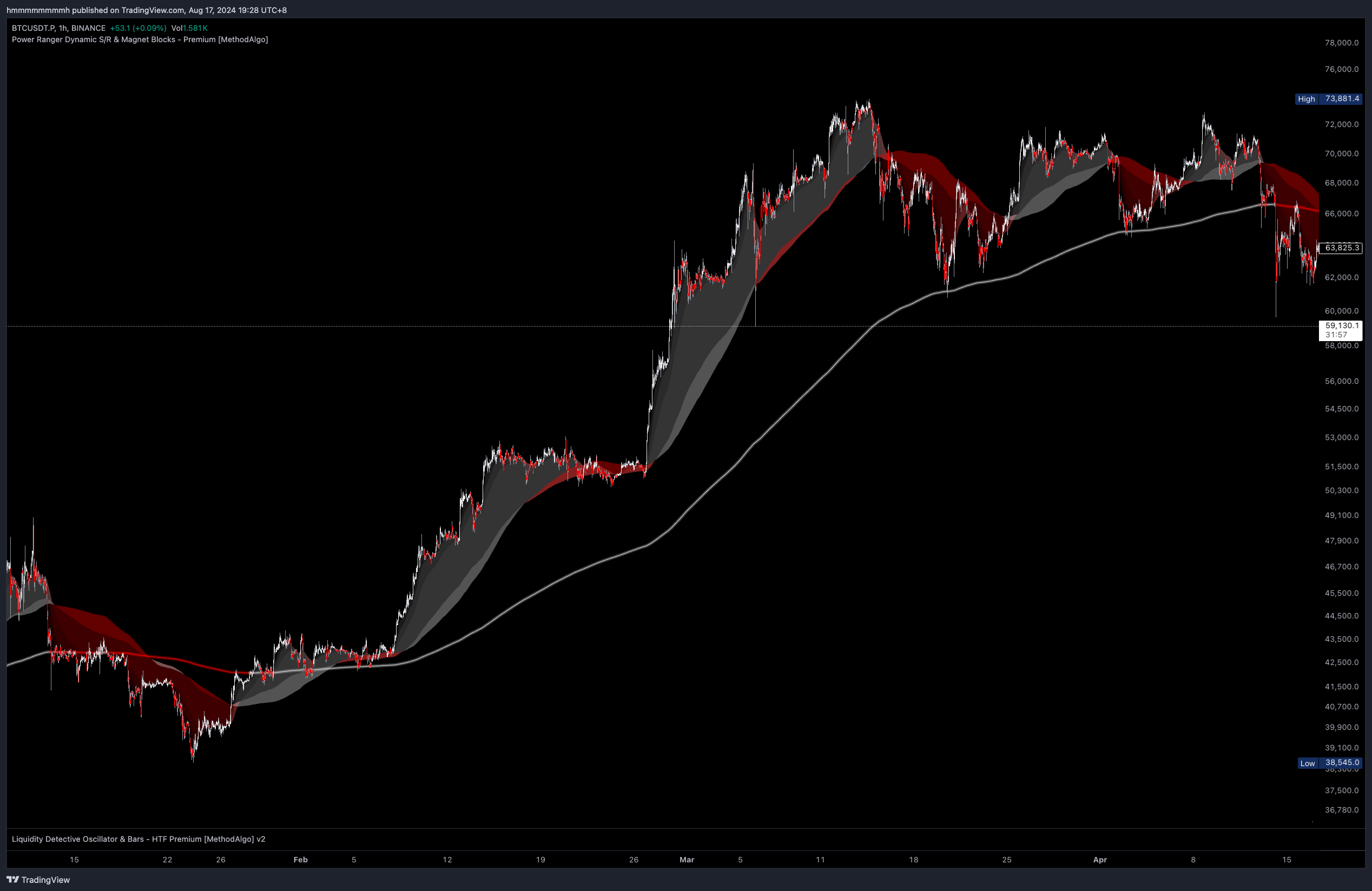 void areaand you don't want to wait for the Golden Pit ortrendlinedip, pay attention to the moment when the price falls into thevoid area(the area between thecloudand thetrendline). This is often a good dip opportunity, usually appearing during the reset phase after the Golden Pit pattern closes. However, be cautious of the Reversal Pattern. - For more accurate timing and more precise entries, consider using the Grim Reaper and Liquidity Detective indicators to further optimize your trading plan.