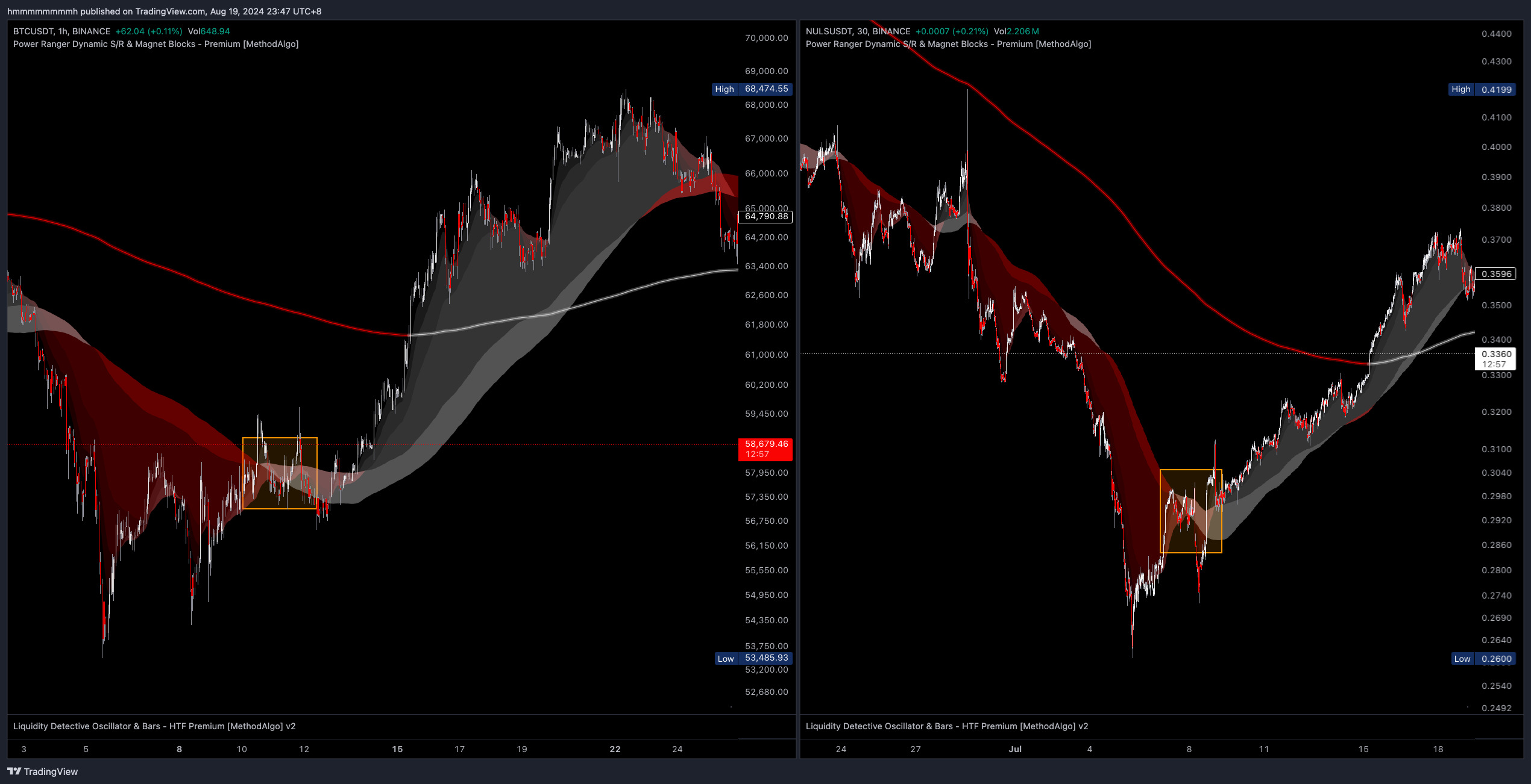 The left chart below shows the XRPUSDT in a pressure cooker pattern.