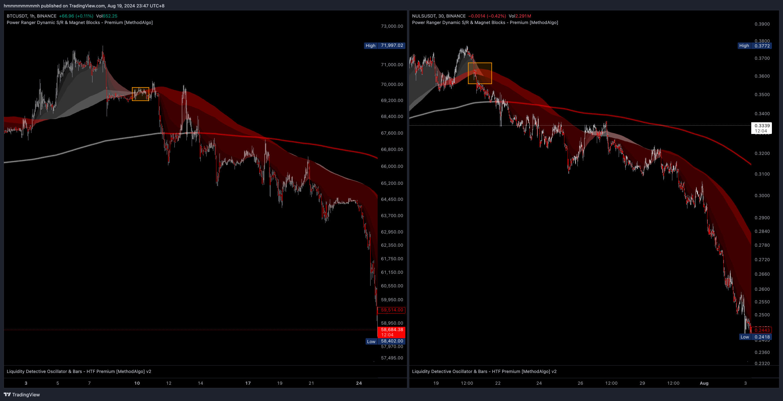 The left chart below shows the XRPUSDT in a pressure cooker pattern.