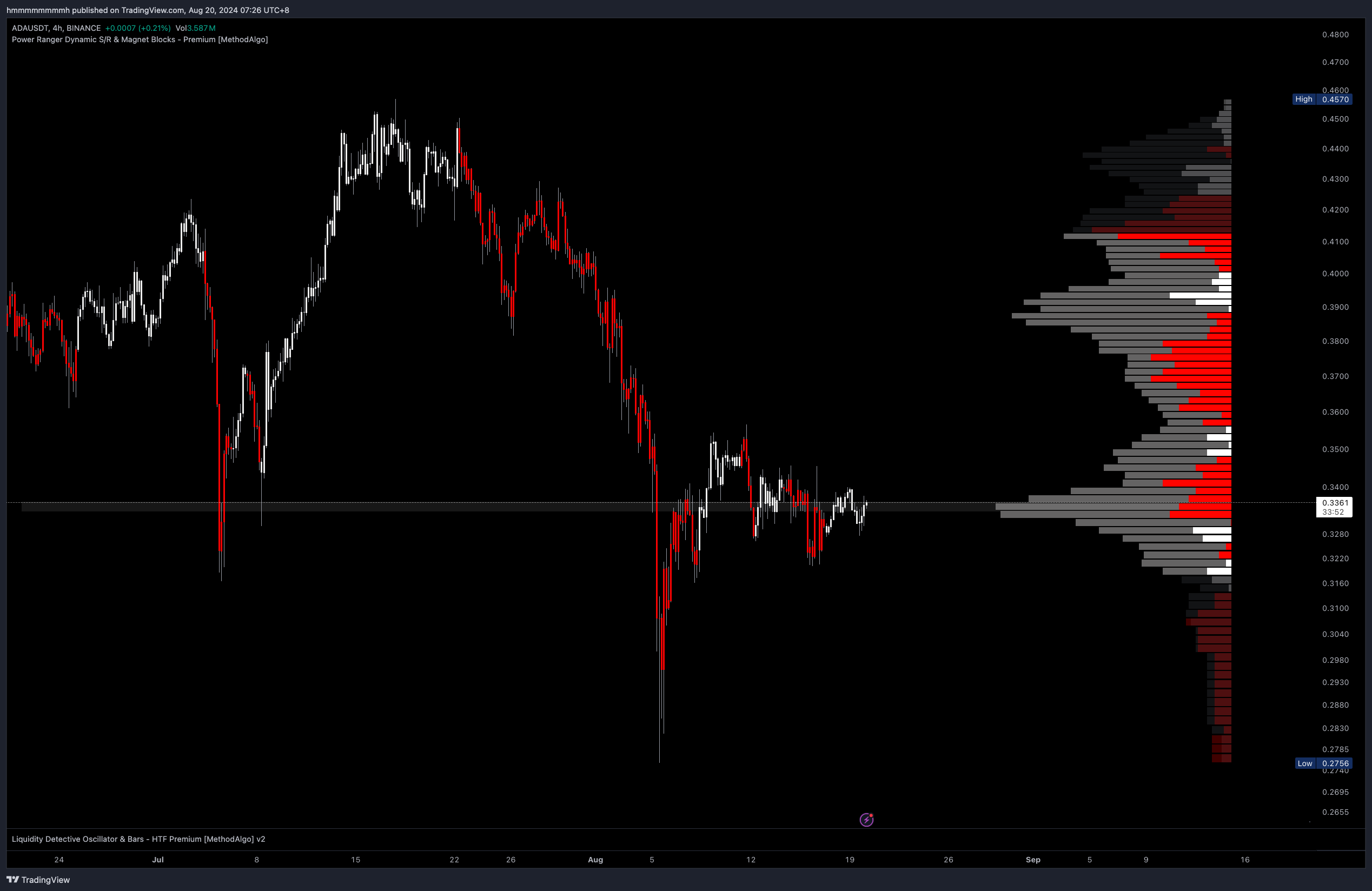 In the chart of ADAUSDT, the left side shows a capitulation candle, and the right side shows the subsequent price movement after capitulation: