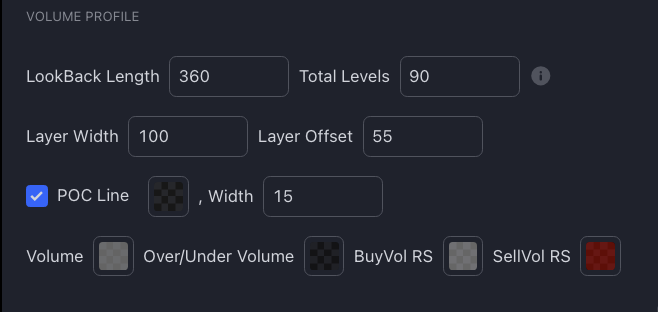 - Lookback Range: The number of candles length for profiling, default is 360 candles. can be adjusted based on your needs and the time frame you are operating in.