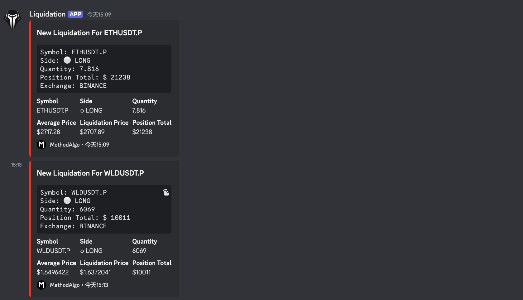 - BTC 、ETH、SOL 等大市值币种仅在清算金额超过 $15,000 时通知,山寨币则在清算金额超过 $7,800 时通知